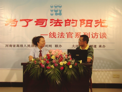 6月22日上午,由河南省高级人民法院和大河网联办、大河网法制频道承办的“为了司法的阳光”一线法官系列访谈节目栏目组来到商城县人民法院,全省优秀女法官商城县人民法院卢颖应邀做客该栏目。面对镜头,卢颖向广大网友畅谈了在家庭生活与法院工作中遇到的矛盾纠葛,倾诉了其对社会公平正义的不懈追求。