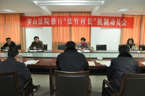 11月30日下午,河南省罗山县人民法院召开推行“法官村长”工作机制动员会。院党组成员、专职审委会委员及各部门负责人参加了会议,会议由院党组成员、政治处主任王娟主持。