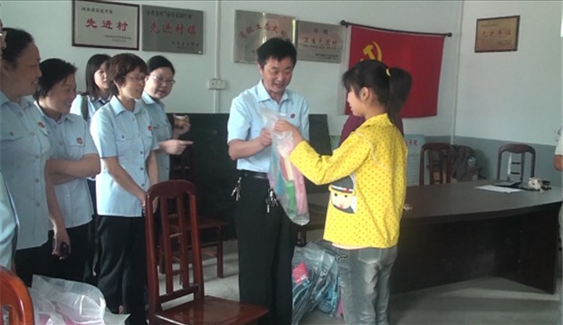 在“六一”儿童节来临之际,5月27日,河南省新县人民法院党组副书记于卫东一行来到金兰村,看望那里的留守儿童,并给他们送去了书包、、笔、字典等学习用品。