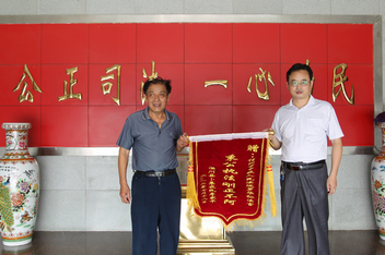 7月19日,一位老人手持一面“秉公执法 刚正不阿”的锦旗来到了信阳中院,“我要当面谢谢给我做主的法官,给他送上一面锦旗”来自潢川县卜塔集镇卜塔集村六段的村民李家平说。