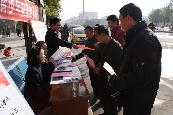 12月4日上午,息县人民法院组织法官干警走上街头,以“在全社会营造关心爱护青少年犯罪的氛围”为主题开展普法宣传。