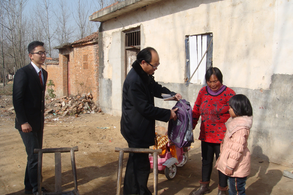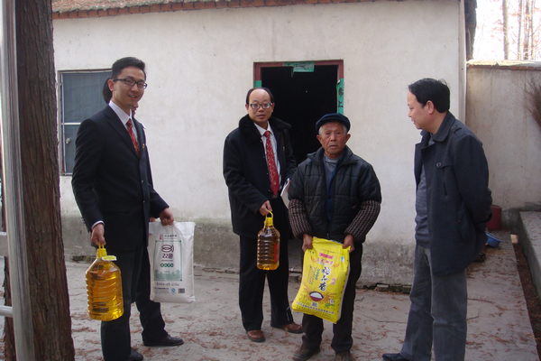 信阳市平桥区法院坚持把帮扶救困社会弱势群体作为精神文明建设一项重点工作,积极开展法院与社会困难群体结对帮扶活动,广泛动员全院干警捐款捐物为社会困难群体献出爱心,要求各部门、干警对结对帮扶的困难群众特别是空巢老人、留守儿童、低保户、五保对象和敬老院进行走访慰问,切实把广大干警的关心关怀送到每一户结对帮扶的困难家庭中去。12月5日,该院团支部书记邢永军带领共青团员组成的志愿服务队干警一起,来到平桥区五里办事处凤台村空巢老人高兴民、留守儿童刘新宇等结帮户家中走访,并送去一些油、米、面和书包等生活用品进行慰问。