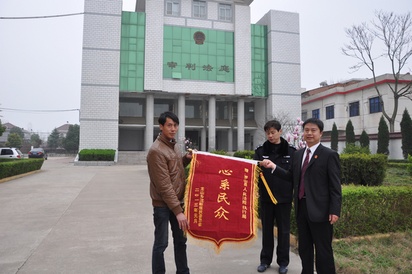 3月20日下午一上班,河南省罗山县人民法院执行局就接到一面锦旗。一起道路交通事故责任纠纷案件的申请人执行人孙某来到法院,将一面绣有“心系民众”的大红锦旗送到执行法官手中,由衷地感谢法官为其讨回了赔偿款。