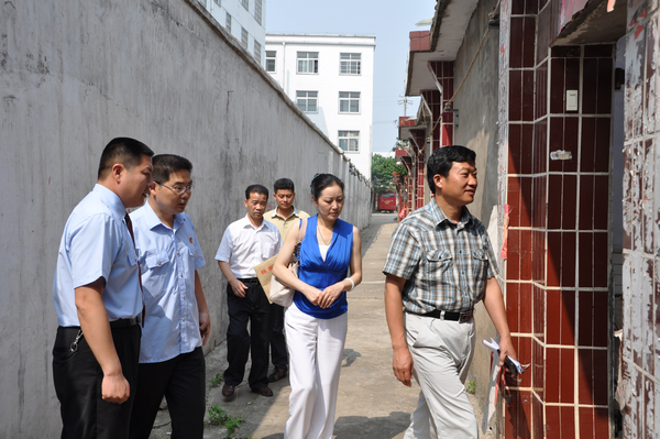 图为李琦(右二)、王俊(右一)和执行法官一起来到执行现场见证执行活动。