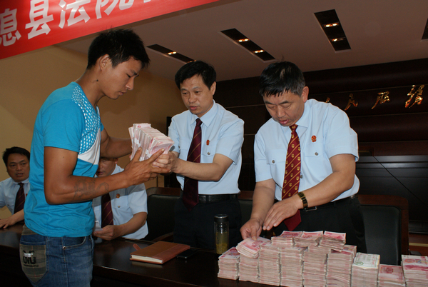 息县法院召开“倡导诚信 见证执行”集中活动月执行款物兑现大会 作者:宋鹏 发布时间:2013-06-14 09:05:45