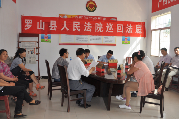 为方面群众诉讼,确保农民群众不因诉讼耽误生产,河南省罗山县人民法院及时成立7个“三夏”涉农巡回法庭,专门负责审理“三夏”时节涉及三农的各类案件,受到当事人的欢迎。图为6月14日上午,该院在子路镇子路村巡回审理一起涉农纠纷时的场景。