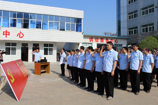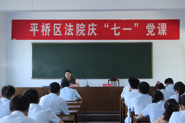 为庆祝中国共产党成立九十二周年,6月28日,信阳市平桥区法院组织了“迎七一 庆党建”系列活动。8:20分,全院干警着装集合,3名法警组成的升旗队踏着整齐的步伐,护卫着五星红旗来到升旗台前。在庄严的国歌声中,每位干警行注目礼,鲜艳的五星红旗冉冉升起。每一位干警郑重地举起右手,在旗下重温了入党誓词,表达了永不叛党,为党的事业奋斗终身的神圣理想。9:00整,区委党校副校长马安良开始给全院干警上党课,马校长分析了目前国际、国内政治、经济、社会各方面的形势,阐述了中国共产党带领全国人民所取得的伟大成就,总结了十八大的重要成果,并从“举什么旗、走什么路、朝什么目标、如何实现目标”等几个方面对十八大报告做了深入浅出的讲解。马校长还结合我区工作实际,对区委领导下的我区各项事业进行了展望,对依法治国方略的实施进行了前瞻性描述。历时一个小时的精彩党课,不时赢得干警的阵阵掌声。大家受益匪浅,纷纷表示,在“七一”来临之前上党课,意义非凡,在今后的工作中,要时刻牢记党的宗旨,立足本职,扎实工作,充分发挥先锋党员的模范带头作用,做一名新时期合格的人民法官。