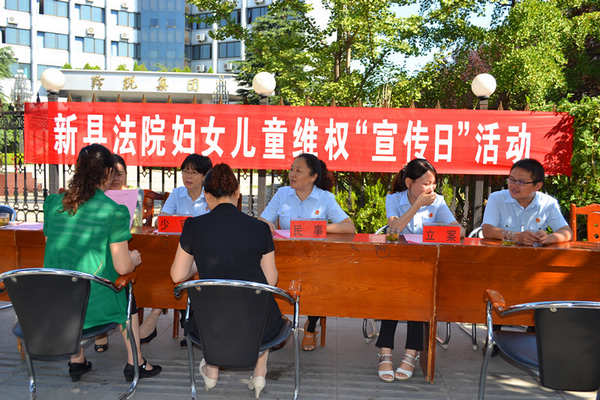 9月18日上午,新县人民法院干警志愿到新县城市中心街道解放路开展“维护妇女儿童合法权益宣传日”专项活动。活动由新县法院保护妇女儿童合法权益庭、政治处、办公室组织,联合县委政法委、县妇联会共同参与活动。民一庭、民二庭、立案庭、少审庭老法官进行现场咨询,年轻干警负责发放宣传材料,群众主动参与咨询维权活动,河南电视台第四套节目记者进行现场采访,现场气氛十分活跃。