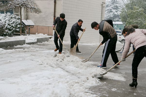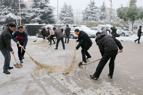1月28日,飞雪降申城,大地银装素裹。为了让前来法院办事的群众和全院干警安全通行,院党组副书记、常务副院长王玉明带领全院各部门三十余名干警,风雪中不畏严寒,清扫办公区内人行道和台阶上的积雪,风雪中塑造了一道靓丽风景。