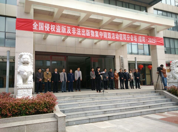 信阳市举行侵权盗版及非法出版物集中销毁暨4·26知识产权宣传周活动