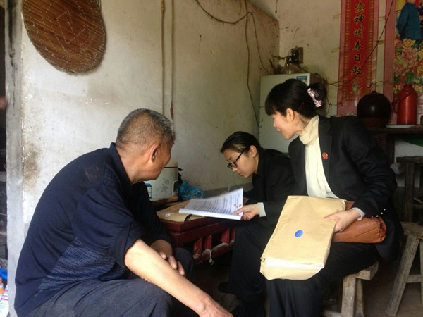 为在“司法为民”上再出新举措,方便农村当事人诉讼,大力提倡把庭开在“村里、田里、农户家门口”, 4月22日,信阳中院法院前往200公里外家住固始县蒋集镇某村的78岁周士如家中,为其做媒的一桩要求退婚返还彩礼的案件进行登门调查取证,免去了古稀老人亲赴法庭的劳累。