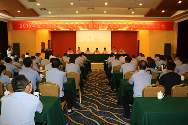 5月25日,2015年全市法院司法警务工作暨司法警察技能大训练活动动员会在新县廉政教育基地召开,信阳中院党组成员、副院长步辉出席会议并讲话,新县法院党组书记、院长郑镇林,中院法警支队支队长李忠智,各基层法院法警工作分管领导、大队负责人及两级法院的83名司法警察参加了会议。会议由中院党组成员、政治部主任奚启锋主持。