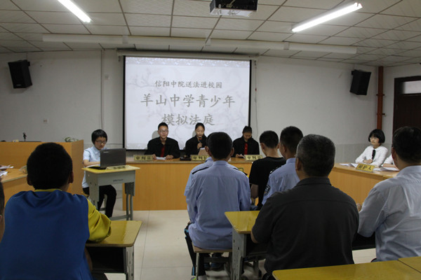 王玉明指出,信阳中院的法官们来到羊山中学,指导大家开展模拟法庭活动,传播法律知识,提高大家的法律意识,希望同学们在学习、成长过程中,能够运用法律的武器保护自己和他人。