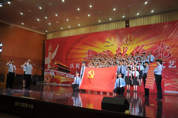 为庆祝党的生日,6月30日,信阳中院举行忠心献给党*庆祝建党94周年表彰大会暨文艺汇演。中院党组书记、院长张社军,市委政法委副书记孙克峰、市直工委副书记崔新中、市文明办副主任杨海帆,中院党组副书记、常务副院长王玉明,中院党组成员、副院长陈焕成、步辉,中院党组成员、政治部主任奚启锋、纪检组长张维民,中院专职审委会委员王福仁、徐鸿等,以及省人大代表赵本新、市政协委员赵安平、廉政监督员况守典、中院全体干警参加了本次活动。