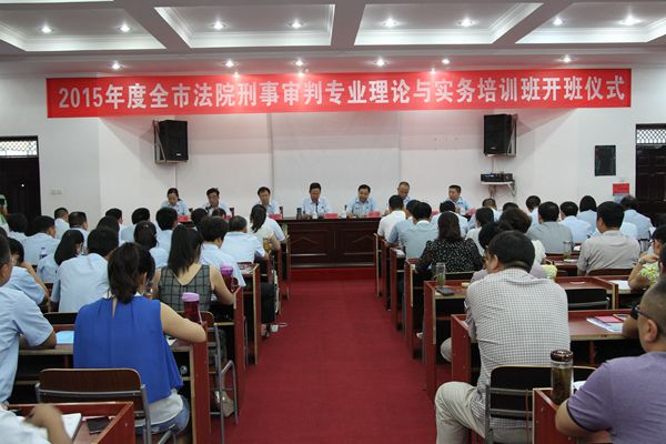 为深入学习贯彻党的十八大、十八届三中、四中全会精神和习近平总书记系列重要讲话精神,深入贯彻落实党中央和中央政法委关于刑事司法工作的决策部署,认真贯彻落实第六次全国刑事审判工作会议精神,积极推动刑事司法改革,大力提升刑事司法能力和水平,8月3日-8月7日,信阳中院在法官培训学院举办2015年度全市法院刑事审判专业理论与务实培训班,对两级法院从事刑事审判工作的法官进行为期5天的集中学习和培训。8月3日上午,开班仪式举行,信阳中院党组副书记、常务副院长王玉明出席开班仪式并讲话,党组成员、副院长步辉,专职审委会委员王福仁及本次培训班的学员参加了开班仪式。开班仪式由法官培训学院院长刘军主持。