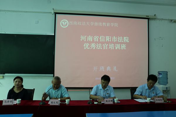 为进一步加强全市法院队伍建设,切实提高先进典型的示范带动作用,不断加强优秀法官的管理和教育,努力营造全市法院争先创优、积极向上的良好氛围,9月13日至19日,信阳中院组织全市优秀法官赴西南政法大学进行为期5天的培训。9月14日上午,本次培训班举行了开班仪式。中院党组成员、政治部主任奚启锋出席开班仪式并讲话,中院党组成员、纪检组长张维民、西南政法大学继续教育学院党总支书记周文茂及本次培训学员参加了开班仪式,西南政法大学继续教育学院培训部主任马丹青主持开班仪式。
