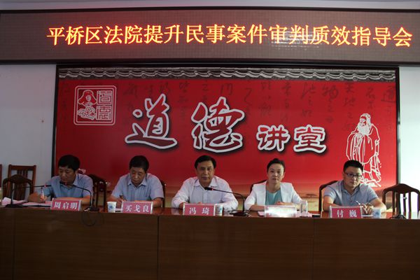 冯琦指出,随着信阳市政治中心、经济中心的东移,平桥区法院管辖范围明显扩大,辖区人口增长较快,案件数量以及增幅长期位于全市法院首位,案多人少的矛盾表现的尤为明显。在此情况下,该院仍然平稳高效地完成了各项审判任务,为地方经济发展、社会平安和人民安居乐业提供了良好的司法保障。冯琦要求,随着国家全面落实依法治国方略的展开,人民法院面临严峻的形式,挑战与机遇并存,党和人民需要一支视公平正义为生命的法官队伍,希望该院广大法官继续发扬法治精神,坚守法律底线,多办案,办好案。冯琦强调,此次调研活动是落实中院党组提升审判质效系列举措的具体活动,中院民二庭形成了专题调研报告,具有高度的专门性和专业性,希望两级法院以此为契机,统一裁判尺度,共同为我市法治发展作出应有的贡献。