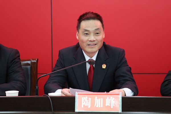 中院民一庭庭长陶加峰向与会媒体介绍信阳两级法院涉军维权情况,并回答记者提问。