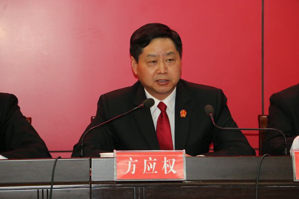 光山县法院新闻发言人、政治部主任方应权向与会媒体介绍信阳两级法院涉军维权情况,并回答记者提问。