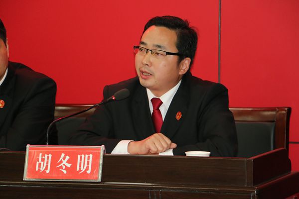 中院新闻发言人、政治部宣教科科长王明强主持新闻发布会