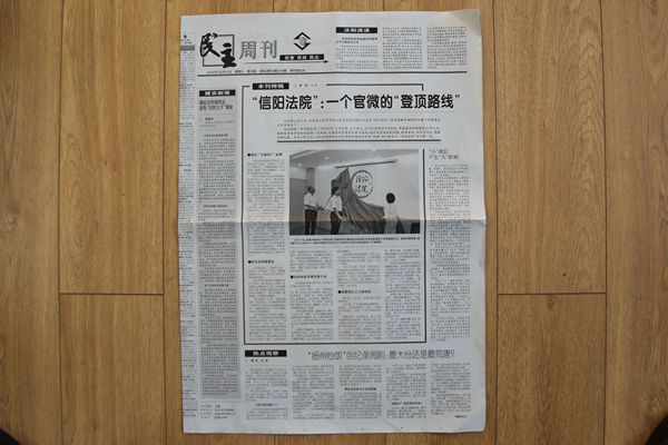 10月31日,人民法院报第五版以“‘信阳法院’:一个官微的‘登顶路线’”为题,以本刊特稿的形式较大篇幅的介绍了“信阳法院”官方微信从无到有、从小到大的发展情况和影响力。人民法院报官方微信进行了同步刊发。