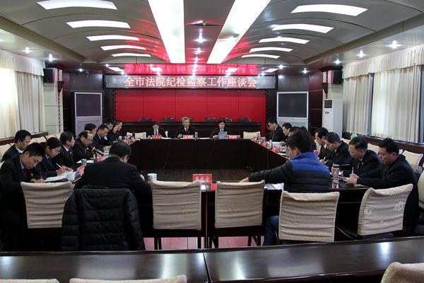 为认真学习贯彻全国法院纪检监察工作座谈会会议精神, 11月26日,全市法院纪检监察工作座谈会在中院审判楼三楼视频会议室召开。中院党组成员、纪检组长张维民出席会议并讲话,各县区法院纪检组组长、监察室主任,中院监察室全体人员参加会议。会议由中院监察室主任余晓晖主持。