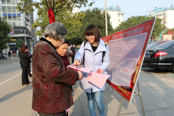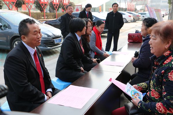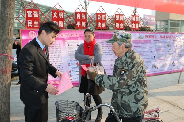 3月1日,《中华人民共和国反家庭暴力法》开始实施。为深入开展 “双百千万”法律服务进基层活动,宣传反家暴法重要意义,有效预防和制止家庭暴力,保护家庭成员的合法权益,来自信阳中院的8名法官,联合市妇联的工作人员,走上街头,开展反家暴法宣传活动。信阳中院党组副书记、副院长冯琦到活动现场指导。