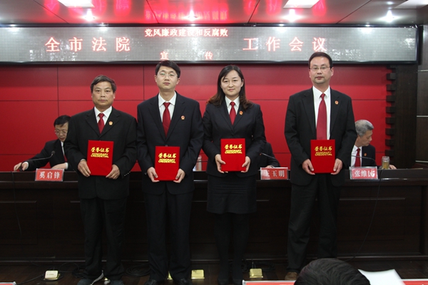 会上,为2015年度全市法院宣传工作的先进集体和先进个人代表颁发获奖证书,宣传工作先进集体代表做典型发言。