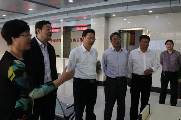 冯林华一行先后参观了解了信阳中院诉讼服务中心建设情况,并到浉河区法院及董家河法庭、光山县法院、商城县法院进行了考察交流。