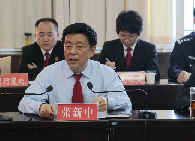 中院党组书记、院长张新中汇报信阳法院司法公开工作