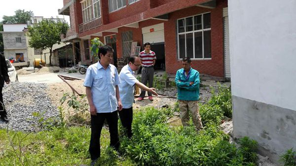 为解决一起相邻关系纠纷,近日,信阳市中级人民法院民二庭法官一行四人驱车百余里到商城县上石桥镇杨寨村查看现场。