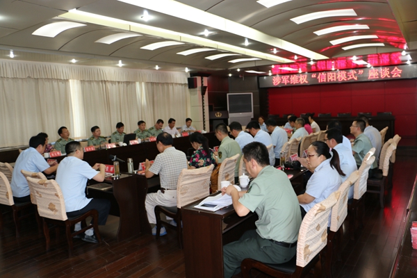 会上,翟陆汇报了信阳市法院涉军维权工作开展情况,新县、平桥区法院分别汇报了本院涉军维权工作和典型案例。与会人大代表、政协委员和部队、军属、当事人代表结合工作和自身实际,就涉军维权开展情况谈了看法和感受,提出了意见和建议。陈辉对信阳法院涉军维权工作给予充分肯定。他指出,涉军维权“信阳模式”全心全意的为军队、为国防建设服务,借助法律、法院和法官的力量,对维护军人合法权益,维护部队形象起到了不可替代的作用,部队和广大官兵受益匪浅。