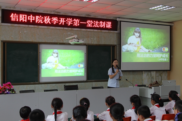 信阳中院法官前往胜利路小学开展“秋季开学第一堂法制课”活动 作者:黄涛 张伟 发布时间:2016-09-12 17:07:09