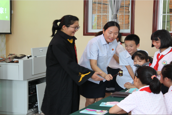 活动中,向该校学生发放了普法漫画书,并为部分参加活动的同学穿上法袍,递上法槌,让他们亲身体法律的威严。