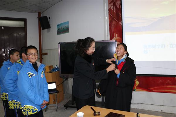 法官为孩子们试穿法袍