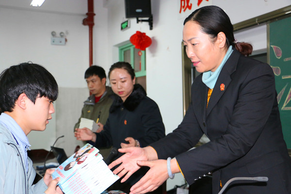 12月9日,信阳中级法院少审庭庭长朱虹、副庭长陈鑫走进信阳市春华中学,开展送法进校园活动。这是信阳中院送法进校园的一个缩影,信阳中院十分重视培养青少年的法治意识,引导学生主动学法、懂法、遵法、用法,增加自我保护意识,为青少年健康成长提供良好的司法保障。