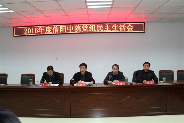 2017年1月12日,信阳中院召开2016年度党组民主生活会。市纪委第十纪检监察室二组组长姜洋到会指导,中院在家党组成员、专职审委会委员参加会议,中院“两学一做”学习教育相关工作人员列席会议。会议由中院党组书记、院长张新中主持。