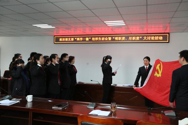 信阳中院政治部支部召开“两学一做”组织生活会暨“明职责、尽职责”大讨论活动 作者:陈思思 发布时间:2017-02-15 08:45:09