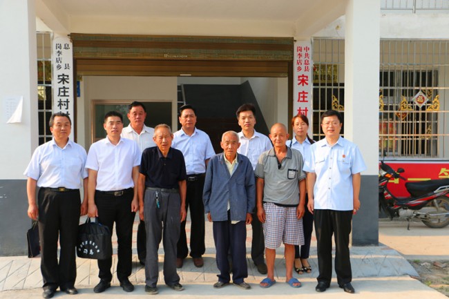 6月27日,信阳中院党组成员、政治部主任奚启锋,中院驻宋庄村第一书记许前让,中院民三庭庭长简立存,中院办公室副主任张振芳等一行在七一建党节前夕,代表中院党组到对口扶贫点息县宋庄村走访慰问。