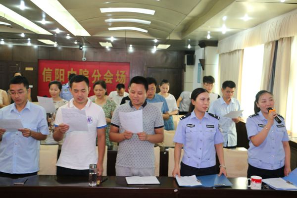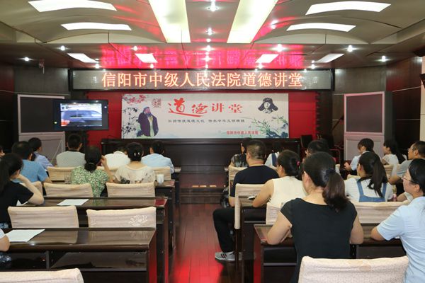 7月25日,信阳市中级人民法院举办2017年第一期道德讲堂,全院40余人参加,接受道德洗礼。活动由法警支队魏静主持。