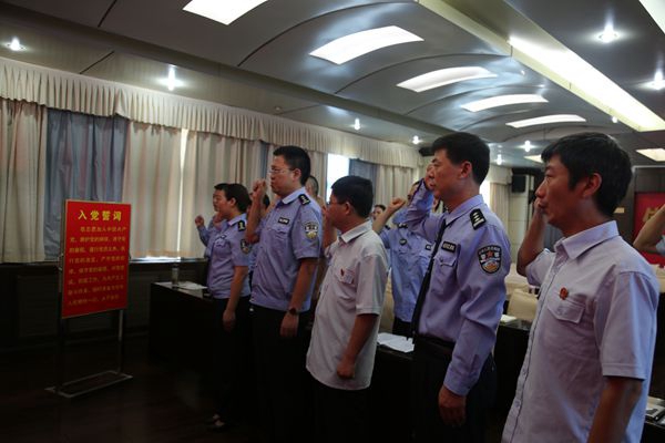 9月11日下午,“我志愿加入中国共产党,拥护党的纲领,遵守党的章程,履行党员义务……”嘹亮的入党誓词回荡在信阳中院审判楼内。信阳中院执行局、法警支队党支部举行执行警务化以来第一次“党员固定活动日”活动。
