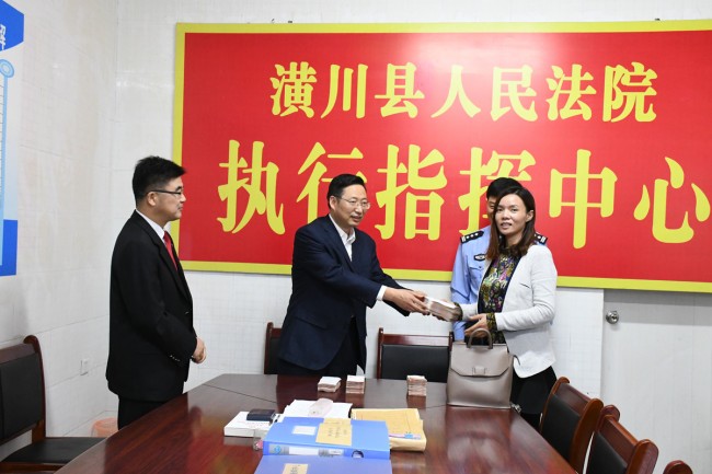 在潢川法院,王玉明首先关注到外出执行刚返回的干警裤腿上的泥水,对他们顶风冒雨、不分昼夜、连续作战的精神给予高度赞扬,对潢川法院党组对执行工作高度重视、措施有力,受到省法院领导批示肯定的显著成效予以充分肯定。对下一步的执行工作提出四点要求:一要抓执行重点。要围绕第三方评估指标开展执行工作,指标中的工作要重点抓;二要抓执行措施。要强化“一性两化”、“一打三反”执行措施,敦促被执行人履行义务;三要抓执行时机。要抓住节假日被执行人回家的有利时机,集中力量,实施突袭,提高执行效果;四要抓执行成效。要一鼓作气,不松懈、不停歇,提高工作成效,确保如期通过第三方评估。在潢川法院执行指挥中心,王玉明向4位申请执行人发放了执行款,听取了该院院长郭长林执行信息化建设、异地委托执行、“一案一帐户”案款管理以及案件流程管理等情况介绍,了解了该院“挂图作战”工作法,观看了执行案件管理三大系统的现场演示,查阅了执行工作台帐和执行局党支部会议记录。