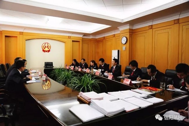 王保森简要介绍了法研所情况以及此次调研交流活动的目的。奚启锋对王保森一行表示了热烈的欢迎和衷心的感谢,详细介绍了信阳中院党组抓党建的主要做法和经验体会。政治部、民三庭、法警支队支部分别汇报了各自党建工作情况。