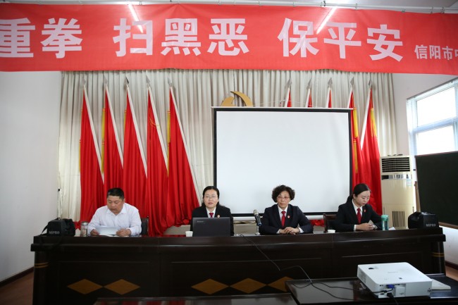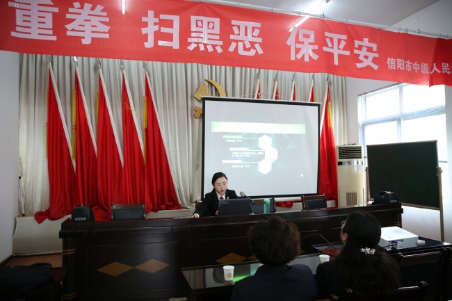 为深入开展扫黑除恶专项斗争,提升社区群众法治意识,3月30日下午,信阳中院组织开展“扫黑除恶”法治宣传活动,送法到信阳市高新区城东办事处和谐社区,中院刑三庭法官陈鑫以“除恶务尽用法亮剑、安居乐业有法保障”为题,为辖区居民、社区工作人员上了一堂生动法治课。